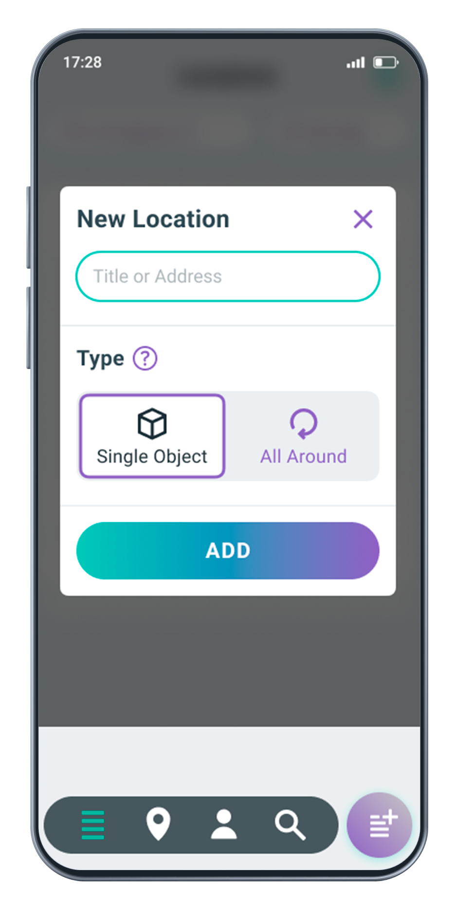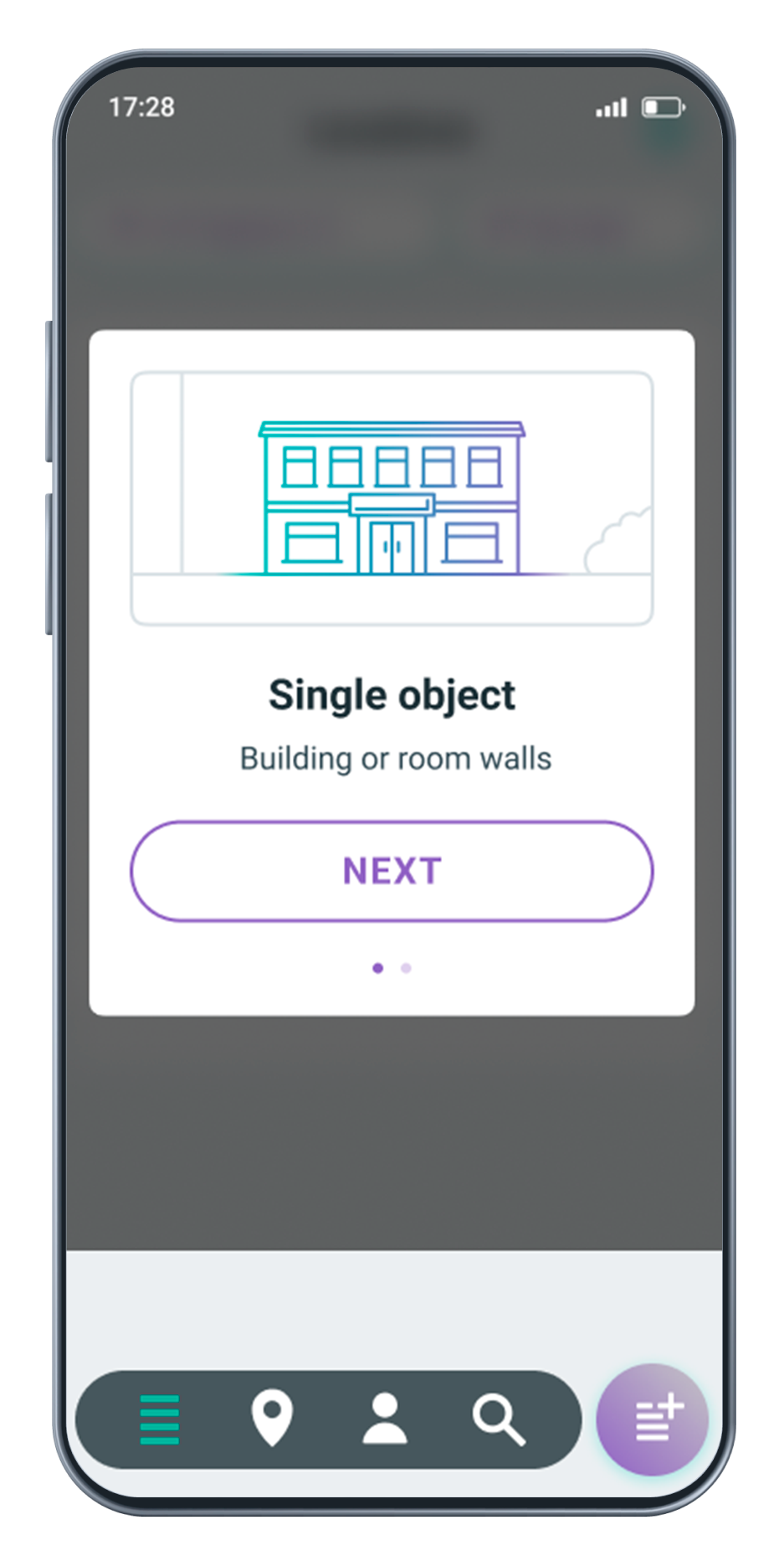 To get started, the user needs to create a location card, first naming it and selecting the location type: "Single object" or "Space around" - these are two different scanning modes, which are easy for an inexperienced user to understand.